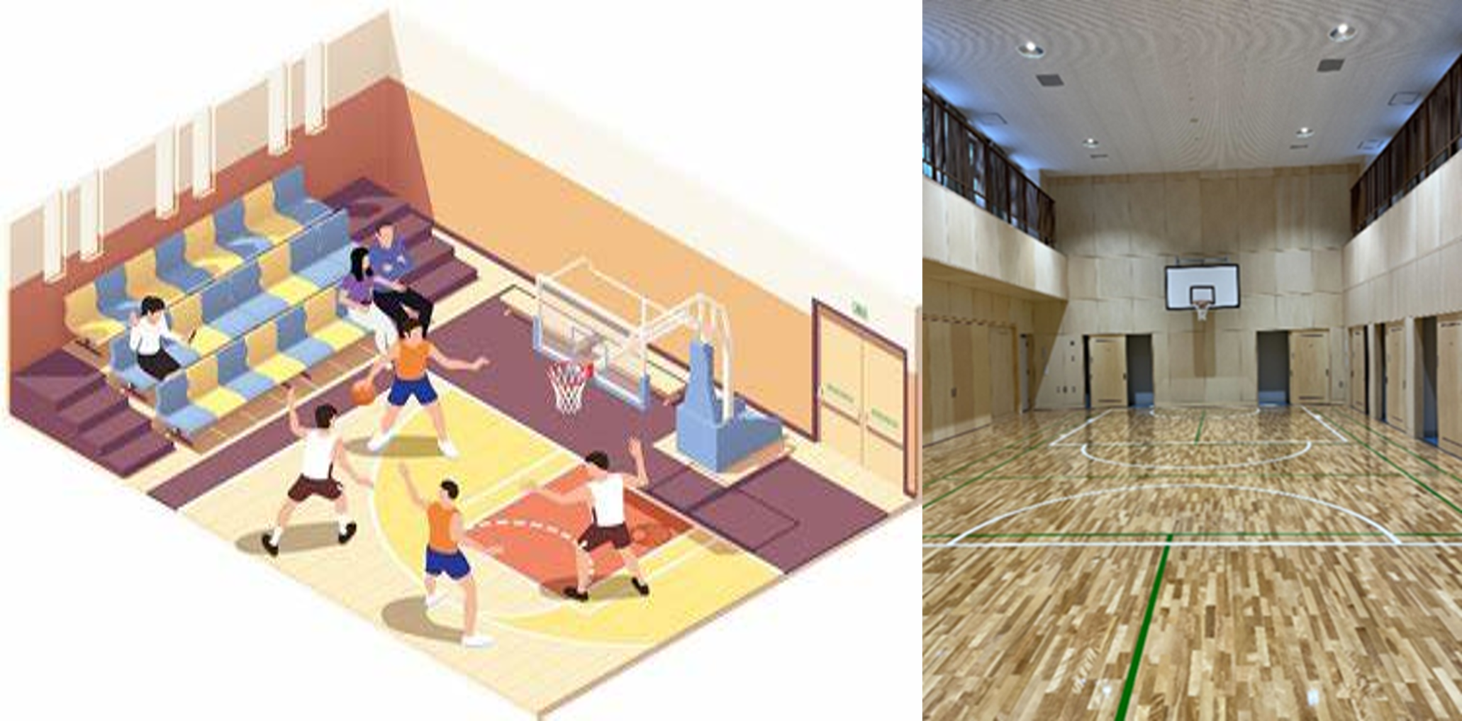 - 築年の古い体育館をFRaTacsで空調設備整備する場合は、床の断熱・遮熱性確保と長寿命化が同時に実現可能となります。
